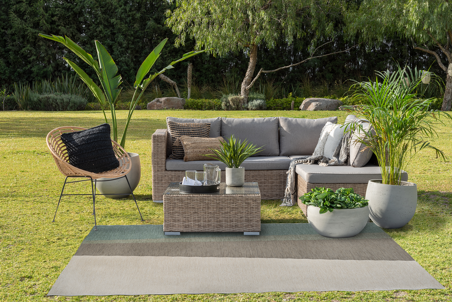 Stellen Sie sich vor, auf einer weichen, gewebten Oberfläche zu stehen, die nicht nur großartig unter den Füßen ist, sondern auch Ihre Dekoration mit ihren schicken grünen und grauen Streifen aufwertet. Dieser Teppich ist mehr als nur ein dekoratives Stück; er ist eine vielseitige Ergänzung, die Wärme und Komfort in jeden Bereich bringt.