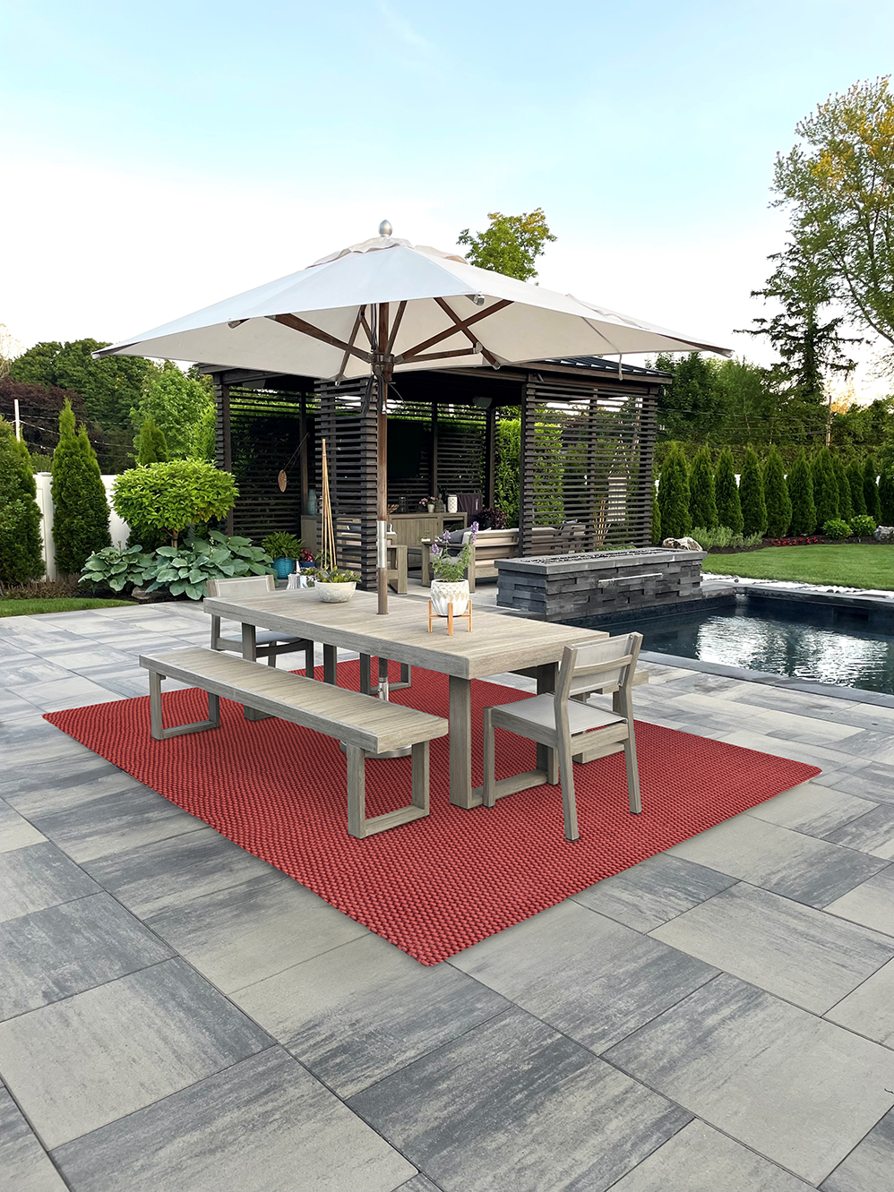 Stellen Sie sich vor, auf einer weichen, strapazierfähigen Oberfläche zu stehen, die nicht nur Ihre Dekoration aufwertet, sondern auch dem täglichen Verschleiß standhält. Der lebendige rote Farbton fügt einen Farbtupfer hinzu und schafft eine warme und einladende Atmosphäre.