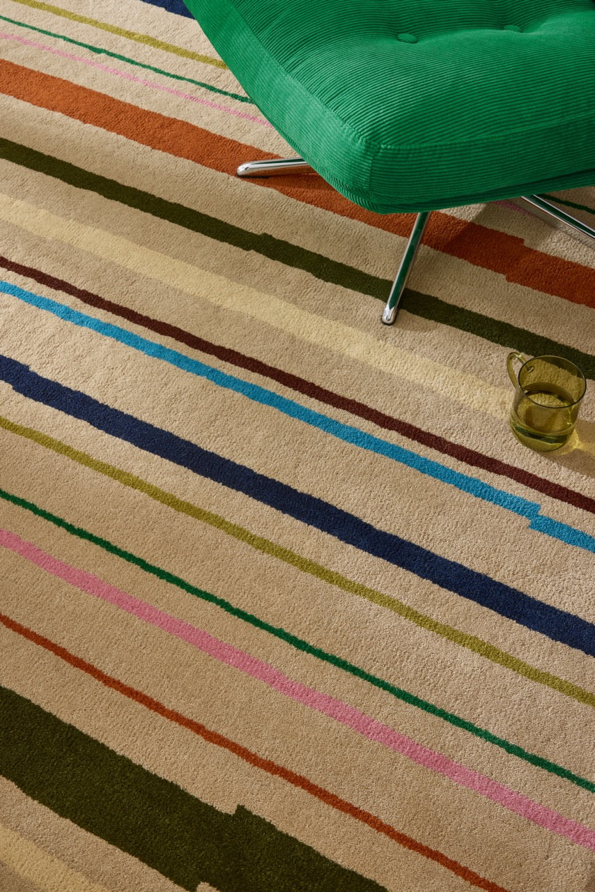 Modernes Streifendessin – farbige Akzente auf neutralem Beige.