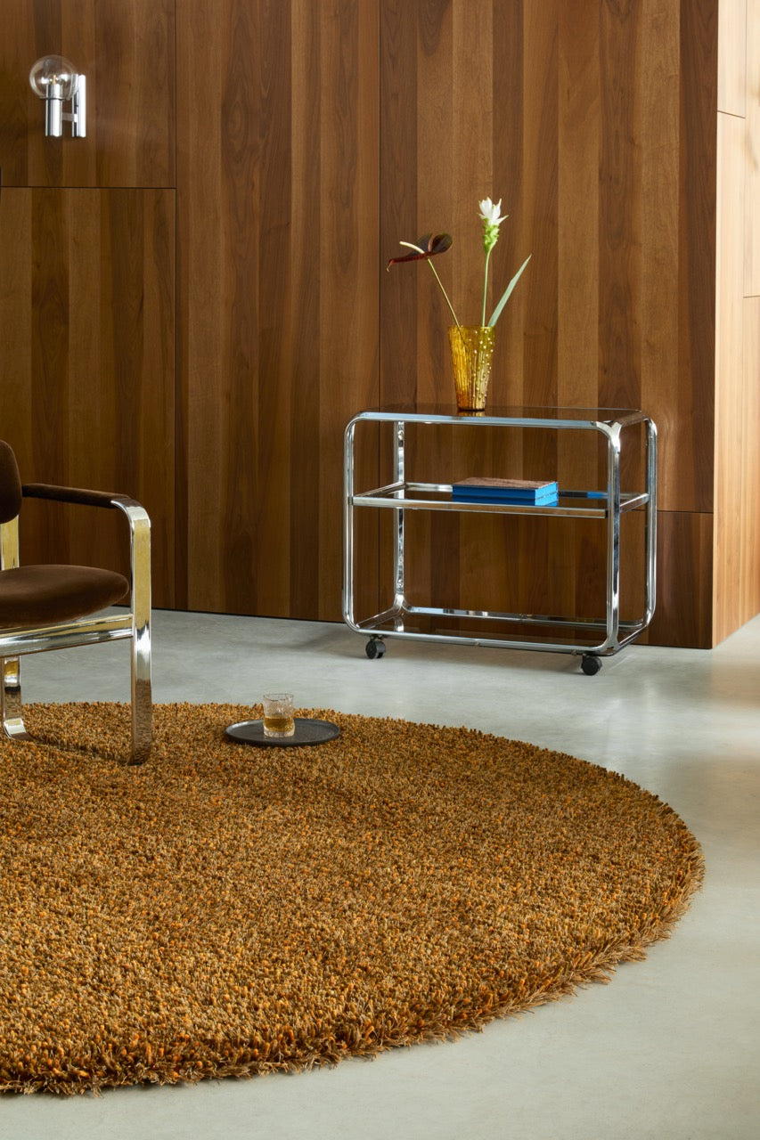 Ob in Kombination mit natürlichen Hölzern, Leder oder dezenten Neutralfarben – dieser Teppich setzt ein warmes Statement. Auch mit kräftigeren Farbakzenten harmoniert er und schafft so ein vielseitiges, stilvolles Wohnambiente.