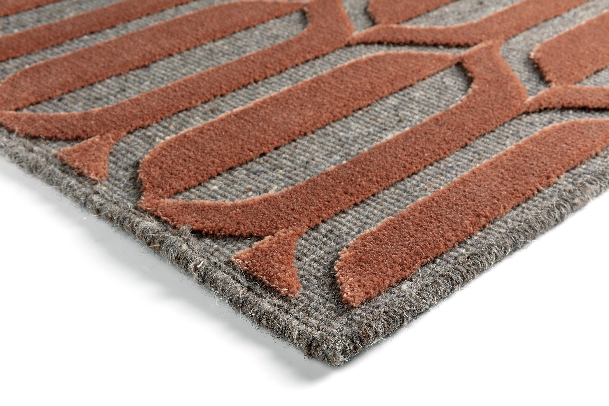 Stellen Sie sich vor, auf einer weichen, gewebten Oberfläche zu stehen, die sich luxuriös unter den Füßen anfühlt. Das geometrische Design in auffälligen Rot- und Grautönen setzt ein mutiges Statement und verbindet mühelos Ihre Dekoration, während es eine gemütliche Atmosphäre schafft.