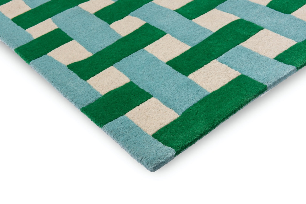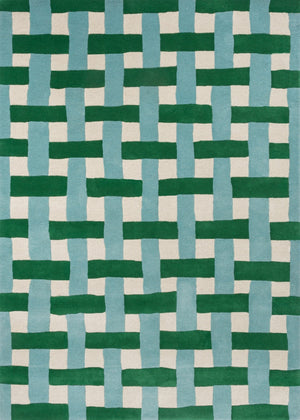 Verwandeln Sie Ihren Raum mit dem Harlequin Basketweave Emerald Aquamarine Teppich, einer atemberaubenden Mischung aus modernem und eklektischem Design. Hergestellt aus hochwertiger Wolle, ist dieses handgetuftete Meisterwerk nicht nur ein Farbtupfer, sondern bietet auch Wärme und Komfort unter den Füßen.