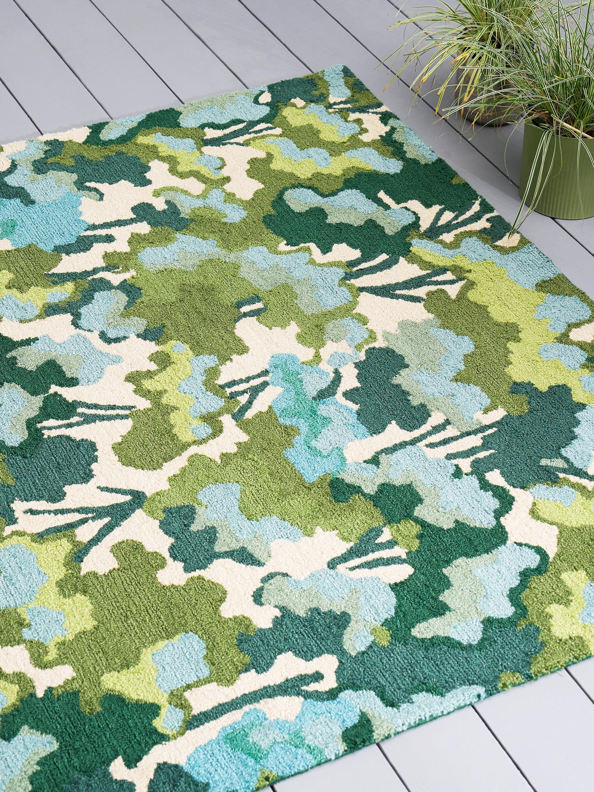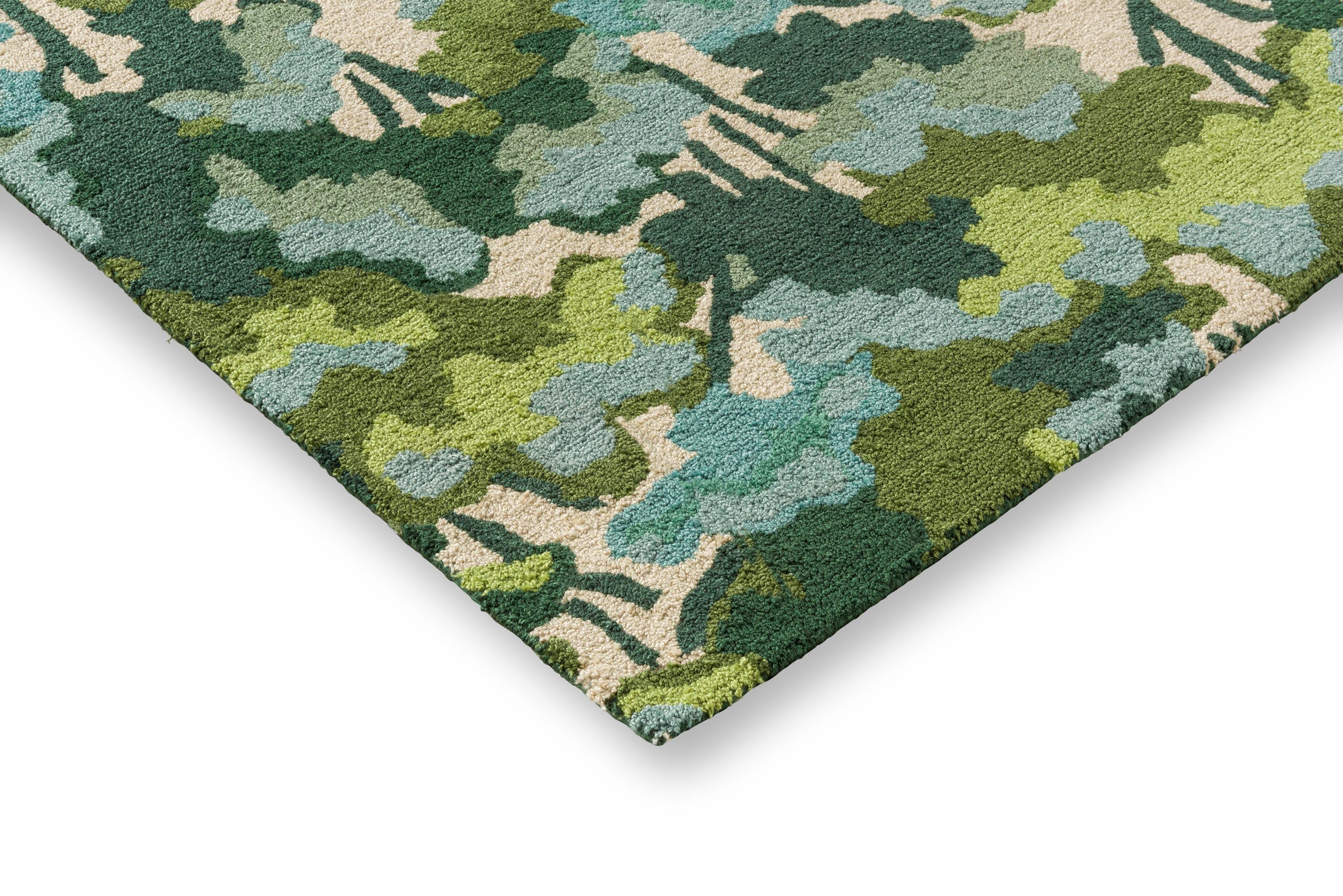 Ob in einem Innenraum oder im Freien, dieser vielseitige Teppich ist darauf ausgelegt, die Zeit zu überdauern und dabei seinen luxuriösen Charme zu bewahren. Verwandeln Sie Ihr Zuhause in ein Heiligtum von Stil und Komfort mit dem Harlequin Tree Tops Green Teppich, wo Raffinesse auf Funktionalität trifft.