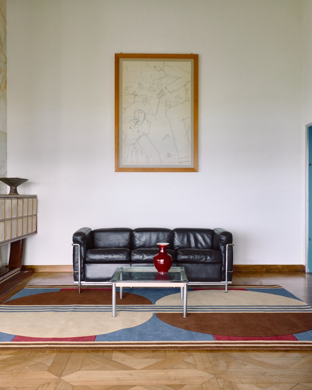 Der Layered Gio Mezza Confetto wirkt wie ein grafisches Statement, das trotzdem leicht und wohnlich bleibt. Die Formen sind klar und retro-inspiriert, während die Farben das Design weich machen. Ein ruhiges Blau, warme Brauntöne, cremige Flächen und ein kleiner Akzent in Confetto-Pink sorgen für einen Look, der auffällt, aber nie zu viel wird.