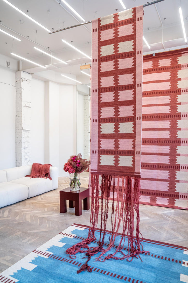 Umarmen Sie die moderne Boho-Ästhetik mit diesem luxuriösen Statement-Stück, das entworfen wurde, um Ihre Inneneinrichtung zu bereichern. Der Layered Rollakan Iris Raspberry Teppich ist mehr als nur ein Bodenbelag; er ist ein Zeugnis für Handwerkskunst und eine Feier des kulturellen Erbes, das dazu bestimmt ist, ein geschätzter Blickfang in Ihrem Zuhause zu werden.