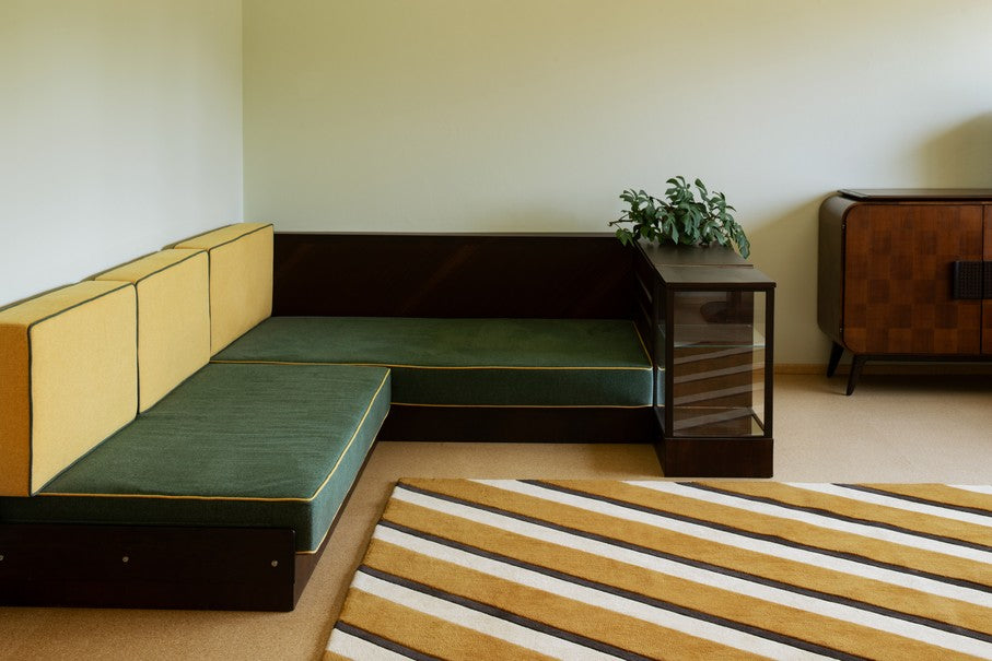 Die dichte Wollstruktur sorgt für Komfort, Langlebigkeit und eine hochwertige Materialwirkung.