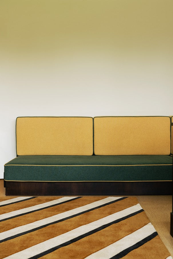 Der Layered Teklan Diagonal Sand ist ein markanter Designer-Wollteppich, entworfen in Zusammenarbeit mit der schwedischen Farbdesignerin Tekla Evelina Severin (Teklan). Mit seinem mutigen diagonalen Muster in Sand-, Camel- und Anthrazittönen setzt er ein starkes grafisches Statement und verleiht jedem Raum eine klare architektonische Linie.