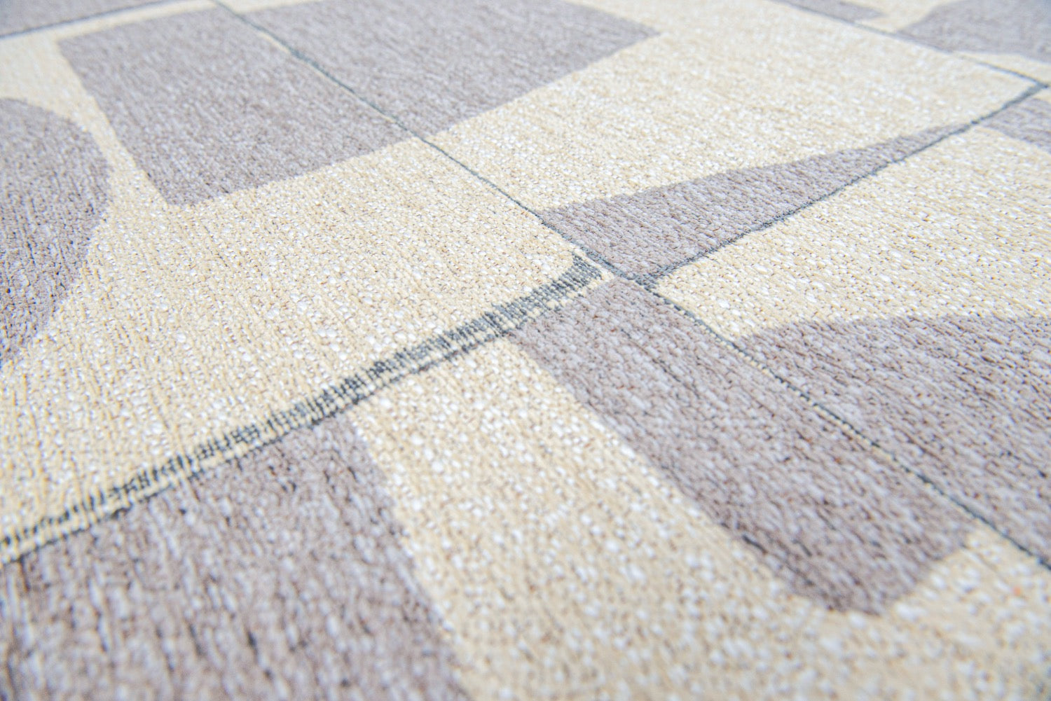 Hergestellt in Belgien, ist dieser Teppich aus strapazierfähigem PET-Material gewebt, das Langlebigkeit gewährleistet und umweltfreundlich ist. Sein beiger Farbton ergänzt mühelos sowohl retro- als auch moderne Einrichtungsstile und verleiht Ihrem Zuhause einen Hauch von Raffinesse.