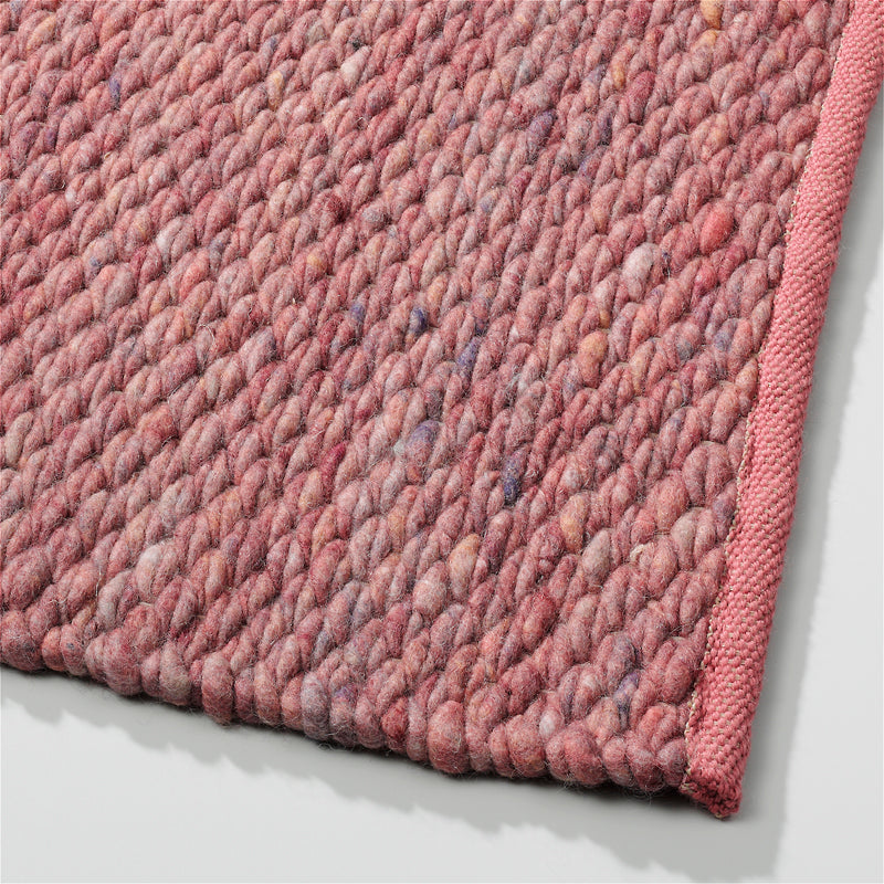 Hergestellt aus der feinsten Wolle, bietet es unvergleichliche Weichheit unter den Füßen und sorgt für Komfort in Ihrem Esszimmer, Wohnzimmer, Ihrer Küche oder Ihrem Schlafzimmer. Der zarte rosafarbene Farbton fügt eine Note von Wärme und Eleganz hinzu und ergänzt nahtlos sowohl industrielle als auch moderne Ästhetik.