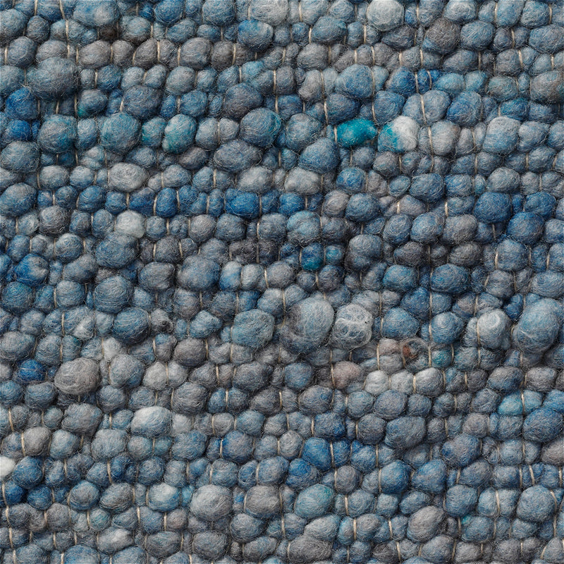 Sein sanfter Blauton vermittelt ein Gefühl der Ruhe, während das schlichte Design sowohl industrielle als auch moderne Ästhetik nahtlos ergänzt. Die sorgfältige Handwerkskunst gewährleistet Langlebigkeit, sodass dieser luxuriöse Teppich die Zeit überdauern kann.